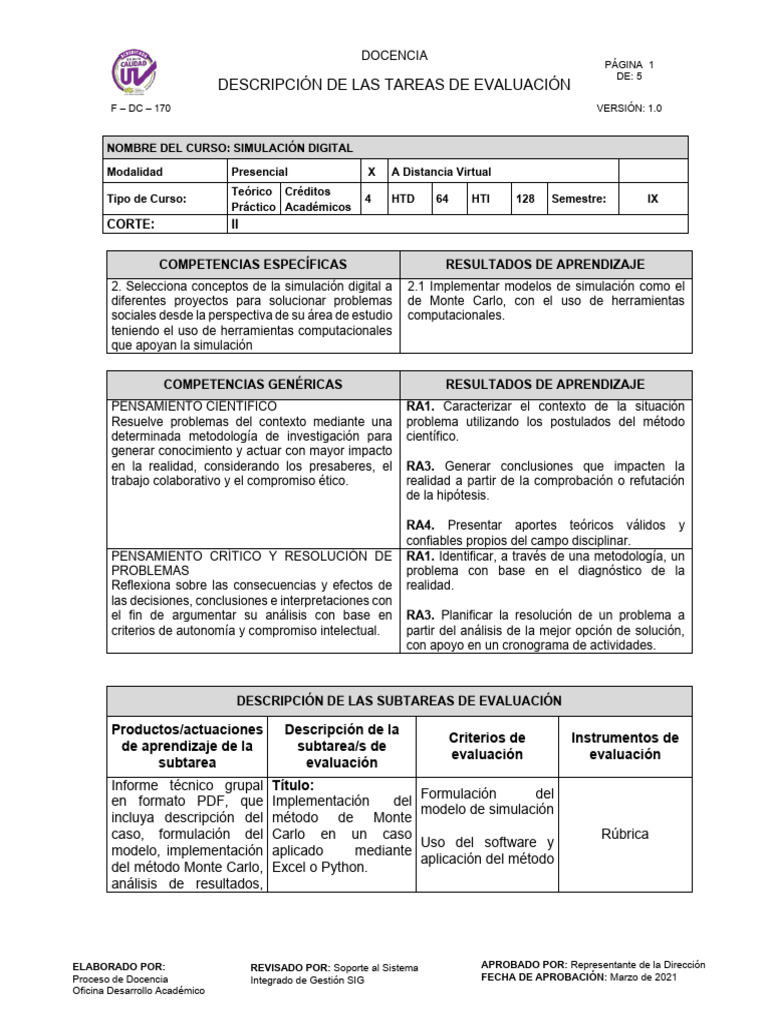Proceso de Docencia Integrado de Gestión SIG FECHA DE APROBACIÓN: Marzo de 2021