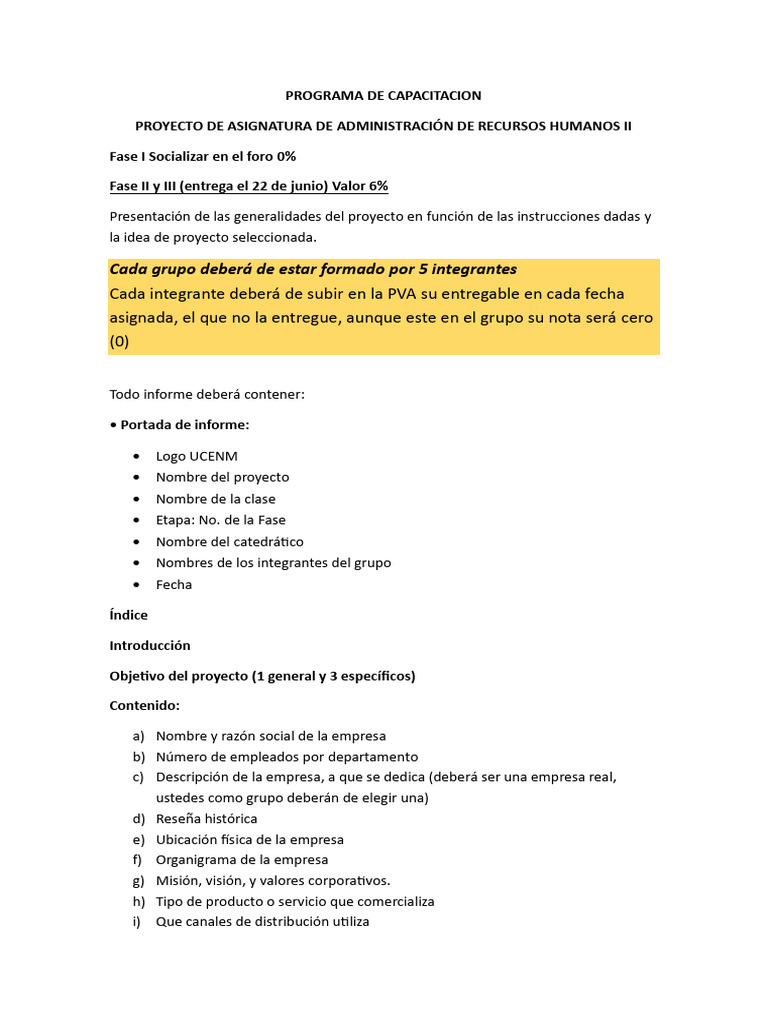 PROYECTO DE ASIGNATURA DE ADMINISTRACIÓN DE RECURSOS HUMANOS II