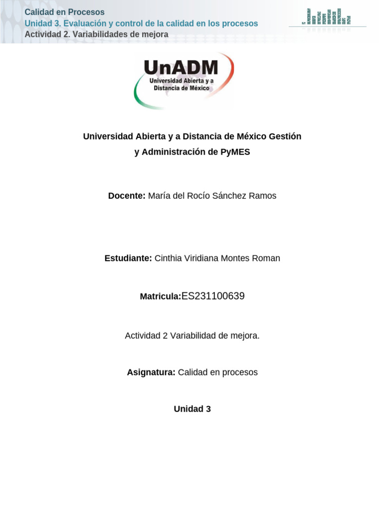 Unidad 3. Evaluación y control de la calidad en los procesos