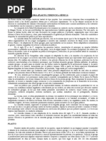 2a. CARACTERSTICAS PRINCIPALES DE LA PALLIATA. - La ambientacin y personajes griegos favoreca la representacin de situaciones de vis comica difcilmente tolerables por el pblico romano, de haberse insertado en un ambiente romano, adems de satisfacer el gusto de los romanos por lo extico y, especialmente, por lo griego. - Uno de los rasgos originales de la palliata frente a sus modelos griegos es la utilizacin profusa de elementos musicales a modo de interludios ( cantica ), apenas existentes en la Comedia Nueva Griega. - La trama es de enredo. Su lnea argumental bsica es como sigue: un joven se enamora de una muchacha, una esclava o una cortesana e intenta conseguirla a cualquier precio. Para ello recurre a las artimaas de su esclavo, el autntico motor de la obra, capaz de engaar al padre del muchacho o de la muchacha, personaje de moral recta, taimado y avaro, o al lenn (proxeneta) o a todo el que se oponga. Al final, se descubre el origen noble de la esclava o de la cortesana y hay impedimento para casarse. - Personajes arquetpicos: todos ellos suelen tener en griego nombres parlantes que caricaturizan su papel. - Estructura que sigue el siguiente patrn: Didascalia o explicacin de las circunstancias que rodean la obra: autor, ttulo, modelo griego, acontecimiento que da lugar a la representacin, magistrados que la organizan, director de la compaa. Argumento o resumen en verso de la obra. Prlogo generalmente expositivo del contenido de la obra cuya funcin es predisponer favorablemente al pblico (captatio benevolentiae). Escenas o desarrollo de la accin dramtica. - La finalidad es hacer rer. El efecto cmico se consigue a travs de la caricaturizacin de situaciones cotidianas y personajes y mediante un lenguaje ridculo o chocante por incoherente, impropio del personaje o como puro juego. 2b. PLAUTO Desde el da en que la Muerte /de Plauto nos ha privado, / luto viste la Comedia, /vaco est el escenario; / la Risa, la Chanza, el Juego, / los Ritmos versificados / sus lgrimas en torrente / a coro van derramando.