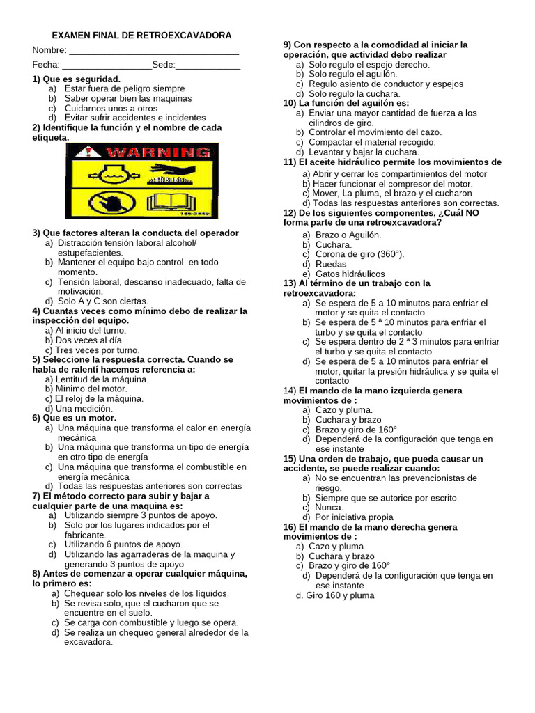 EXAMEN FINAL DE RETROEXCAVADORA