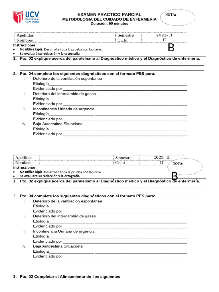 2. Pto. 04 complete los siguientes diagnósticos con el formato PES para:
