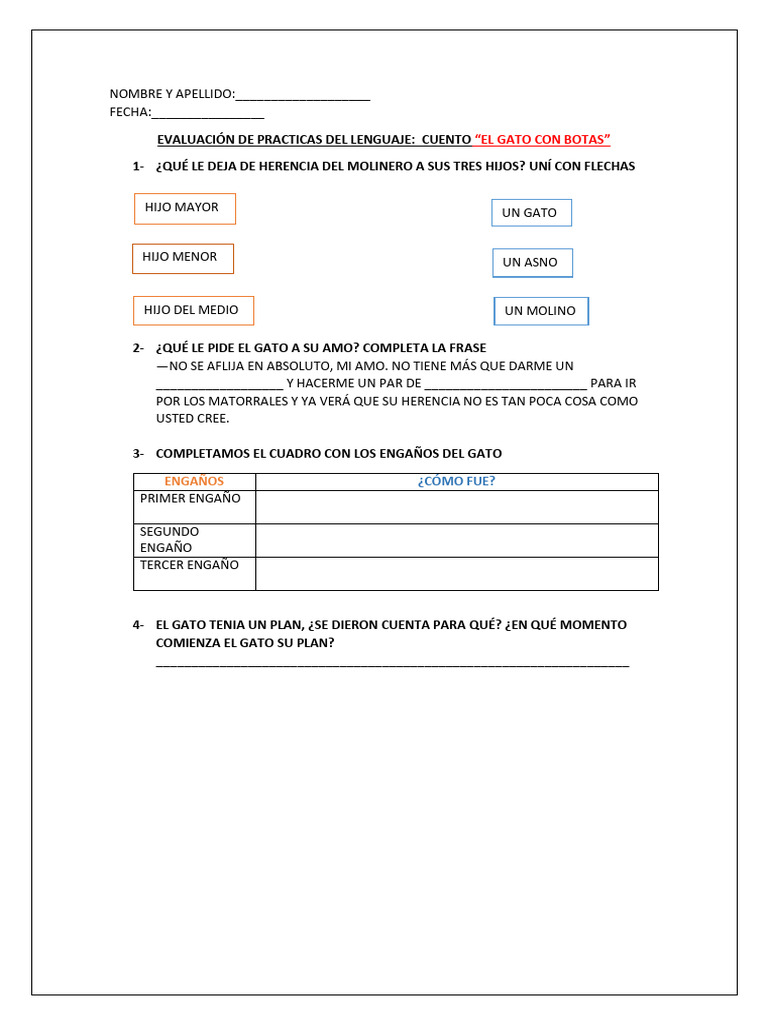 EVALUACIÓN DE PRACTICAS DEL LENGUAJE: CUENTO “EL GATO CON BOTAS”