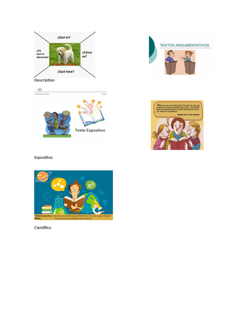 El documento presenta diferentes tipos de textos, incluyendo descriptivos, expositivos, científicos, literarios, publicitarios, instructivos, históricos, jurídicos, digitales y periodísticos. Cada tipo de texto tiene características y propósitos específicos en la comunicación. La clasificación ayuda a entender mejor la función y el uso de cada uno en diversos contextos.