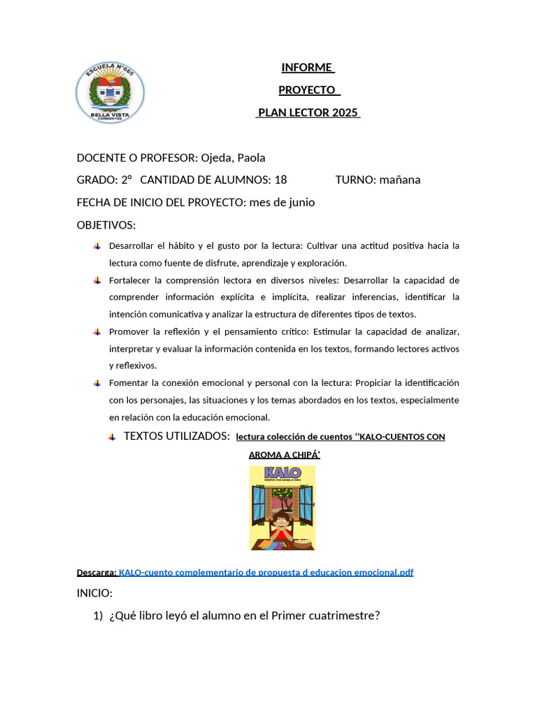 GRADO: 2° CANTIDAD DE ALUMNOS: 18 TURNO: mañana