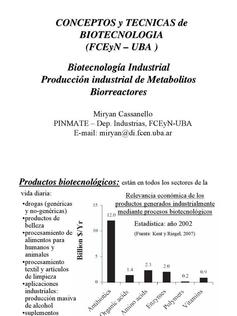 Producir las mismas clulas o microorganismos (biomasa) en gran escala Producir en gran escala compuestos (intracelulares o extracelulares) resultantes del crecimiento celular (metabolitos)