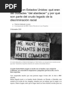 importante ver de qu manera, mediante este tipo de acciones, se interpela la definicin que se da desde los discursos hegemnicos acerca de la ciudadana o la pertenencia a una tierra determinada. En estas prcticas se vislumbra una nueva forma de identidad: ya no hay porqu elegir entre una y otra nacin, se eligen ambas porque los dos espacios son habitados de una u otra forma. Esto es importante, porque uno de los factores fundamentales que genera esta transnacionalidad de los grupos migrantes, es que no necesariamente ocupar un espacio determinado es habitarlo. Mediante esta clase de ejercicios se incursiona en el terreno de la definicin. Los migrantes parecen resistirse a ser englobados en una totalidad cerrada porque ella implicara dejar de lado sus particularidades: no todos somos iguales. De esta manera se genera una alteracin del discurso hegemnico, y se demuestra que la narrativa del poder deja espacios en blanco, en donde estos grupos pueden surgir y afianzarse en su diferencia. "Lo que es irremediablemente distanciador en la presencia del hbrido [...] es que la diferencia de culturas ya no puede ser identificada o evaluada como objetos de contemplacin epistemolgica o moral: las diferencias culturales no estn simplemente ah para ser vistas o apropiadas"17. IV. A modo de conclusin El presente trabajo no pretende, desde ya, arribar a una conclusin absoluta y cerrada, sino abrir vas de indagacin a partir de la exploracin sobre los modos de interaccin poltica en la comunidad estudiada y las estrategias de poder desprendidas desde las esferas hegemnicas. Sin embargo, parece necesario subrayar ciertos puntos fundamentales en el anlisis. La nocin de comunidad imaginada como instancia productora de un tipo de subjetividad concreta acorde a un proyecto nacional especfico, en la praxis excluye a todo sujeto que no logre acomodarse a su definicin de ciudadano tipo, y lo configura como diferente, como aquello a lo que se teme porque es impenetrable e intraducible. Lo diferente parece tornarse indispensable para forjar un proyecto estadual especfico, en tanto toda definicin deja fuera de s una serie de conceptos que se configuran como lo otro: el ciudadano tipo es definido en contraposicin a aquel que no lo es, y este es necesario para que el primero exista. Conocimiento, definicin, contraposicin "[...] significa elevarse por encima de las contingencias inmediatas, salir de uno mismo y alcanzar lo extrao y lo distante. El objeto de un conocimiento as est expuesto por naturaleza a que se proceda a su verificacin; es una realidad que aunque se desarrolle, cambie o se transforme [...] es, fundamental e incluso ontolgicamente, estable. Conocer as un objeto es dominarlo, tener autoridad sobre l [...]"18. En la actualidad, en los Estados Unidos, la comunidad latina es definida como la primer minora, superando a la que fuese otrora duea de dicha etiqueta: la comunidad afrodescendiente. La mera palabra minora nos devela de manera explcita la forma en que la narrativa hegemnica estadounidense funciona: lo latino es lo otro, el objeto no deseado que, a fuerza de filtrarse por las fronteras, debe transformarse en conocido y conmensurable. Pero la realidad es que el discurso del poder no logra acceder completamente a esa alteridad porque ella se niega a ser homognea y conceptualizable, y, por ende, en la narrativa dominante quedan espacios indefinidos. En la medida en que lo diferente se filtra por esos sectores vacos que deja el discurso dominante, escapa a toda definicin y deja de ser controlado por el ojo vigilante del poder19: comienza a erguirse como entidad insurgente de choque y negociacin, burlando a la hegemona y a sus estrategias.