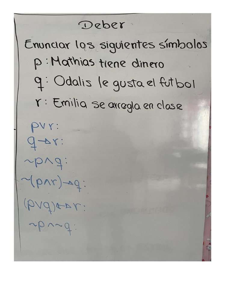 Si p y q son proposicionales, la proposicion compuesta de la siguiente forma: