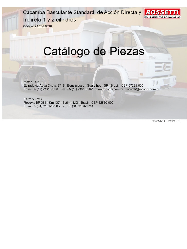 Caçamba basculante STD Acción directa e Indirecta, dimensiones int. y pesos aproximados..........71, 72