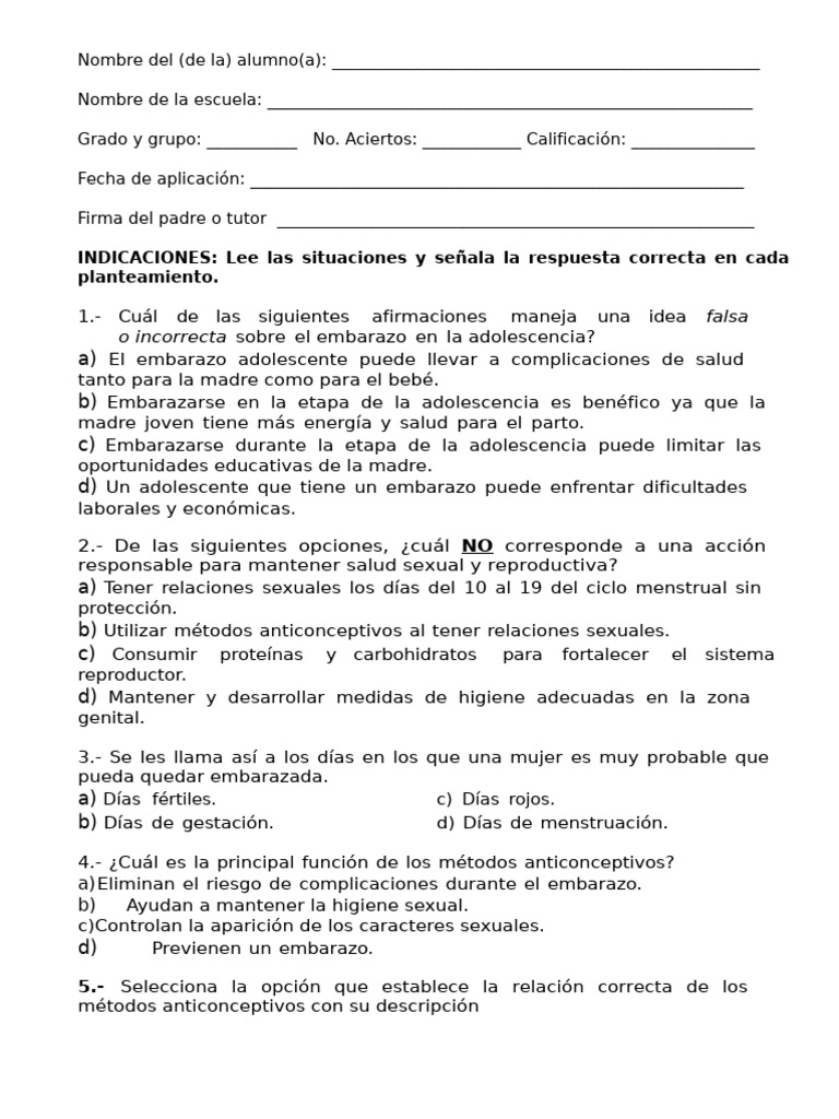 o incorrecta sobre el embarazo en la adolescencia?