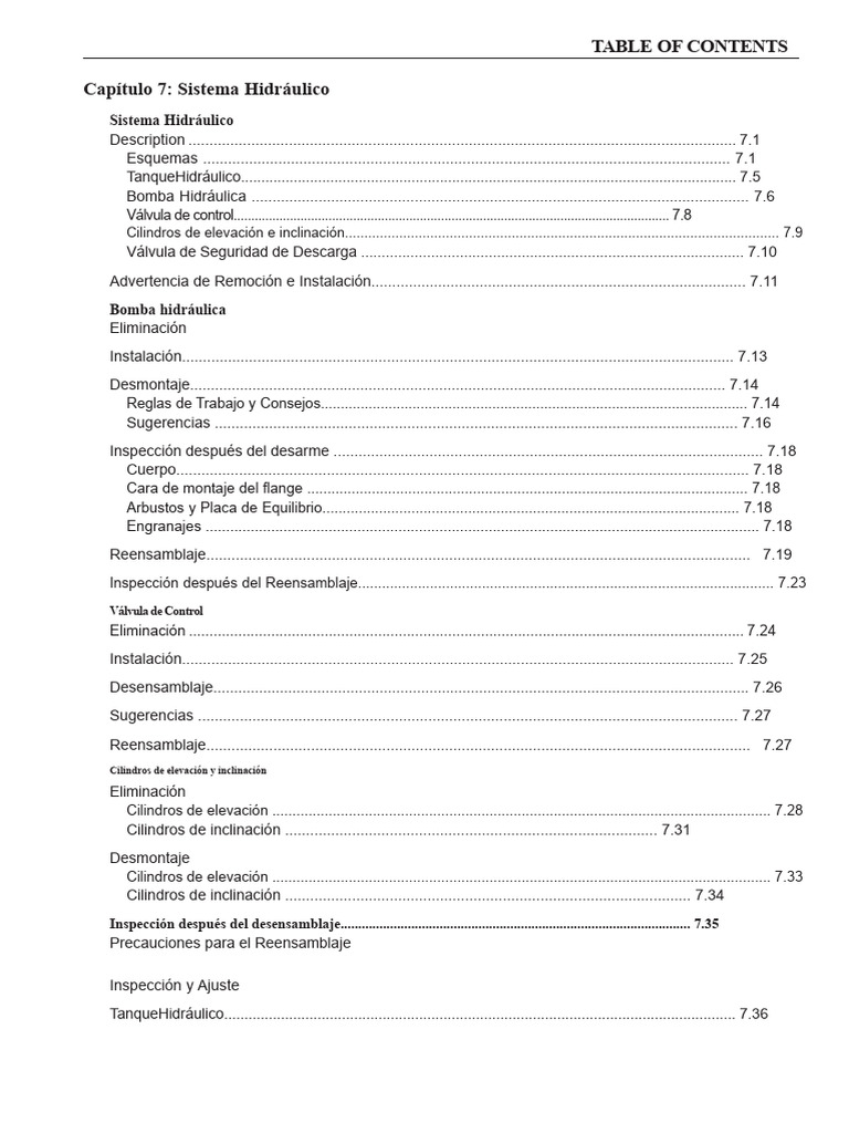 2. Bomba de elevación hidráulica 5. Válvula de control principal Cilindro de elevación