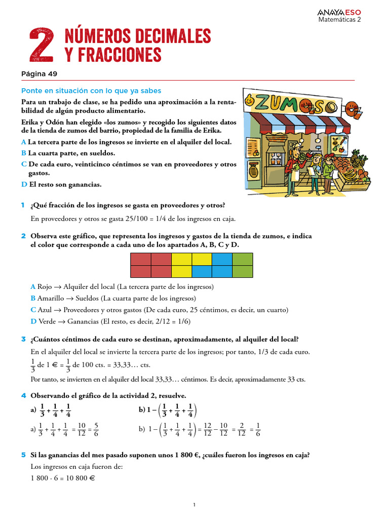 2 Observa este gráfico, que representa los ingresos y gastos de la tienda de zumos, e indica