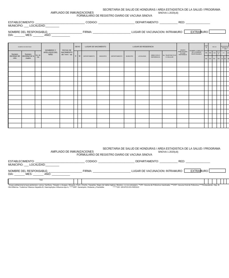 FORMULARIO DE REGISTRO DIARIO DE VACUNA SINOVA