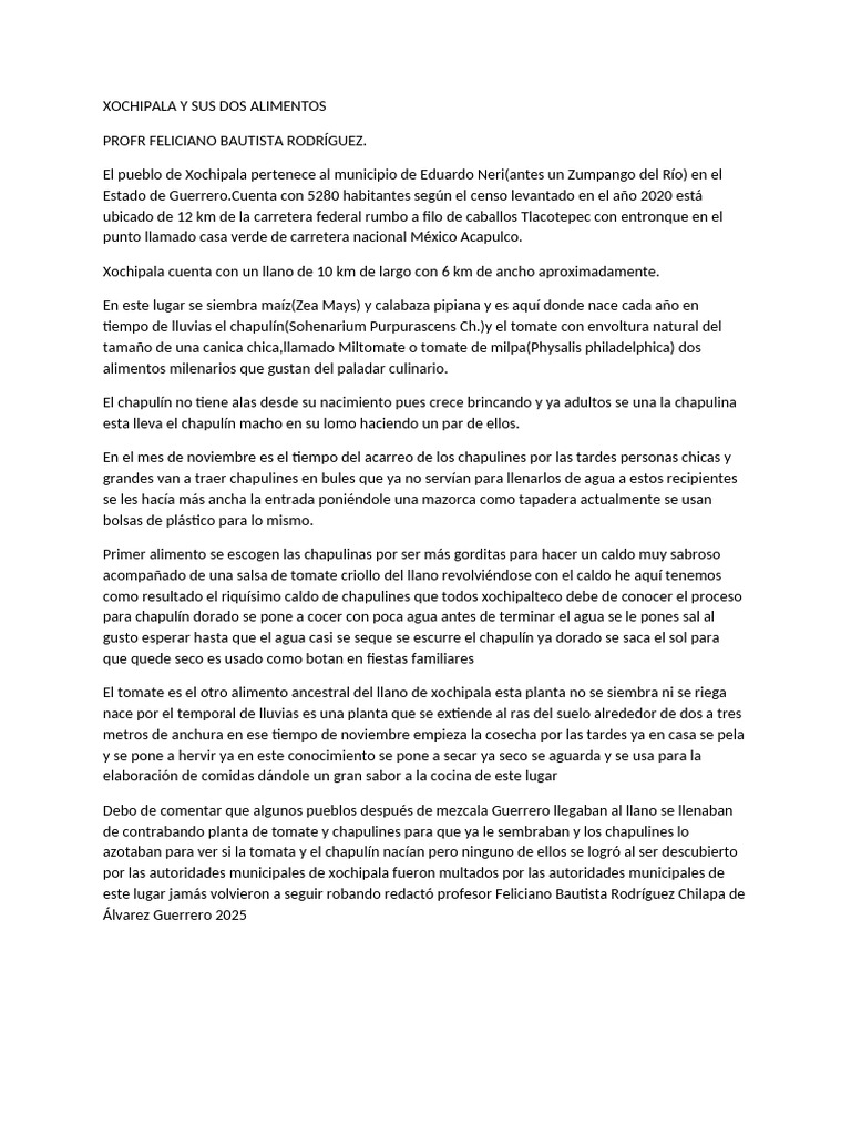 este lugar jamás volvieron a seguir robando redactó profesor Feliciano Bautista Rodríguez Chilapa de