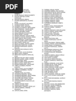 1 Patricia del Carmen Bobadilla Vsquez 2 Gabriela Campos Prez 3 Braulio Guilln Flores 4 Dalila Maribel Campos Quispe 5 PACHO GOMEZ, EDWIN LUIS 6 Jenny Melgar Davila 7 Nancy Chino Chambilla 8 Silvia Dominga Mayta Lazarte 9 Angel Mauricio Zegarra Meza 10 Maritza Lorena Reynoso Colona 11 Elena Juana Valdivia Snchez 12 Rocio Isabel Valdivia Snchez 13 Sonia Taco Cuayla 14 Victoria Eustaquia Maquera Yufra 15 Olivia Cornejo Vargas 16 Tiodosa Yanina Amara Quintanilla 17 Carmen Rosa Flor Toledo 18 Maria Asunta Kuong Cuillar 19 Ins Dina Mamani Mercado 20 Gladys Antonia Flores Flores 21 Carla Mara Flores Zapana 22 Werner Alain Edilberto Ponce Rodriguez 23 Aurora Catalina Cruz Martines 24 Sonia Elizabeth Amsquita Cruz 25 Dina yolanda Vilca Fabin