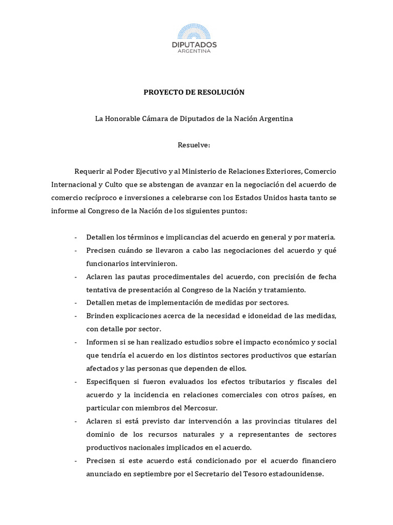 Requerir al Poder Ejecutivo y al Ministerio de Relaciones Exteriores, Comercio