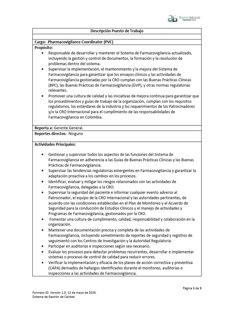 Cargo: Pharmacovigilance Coordinator (PVC)