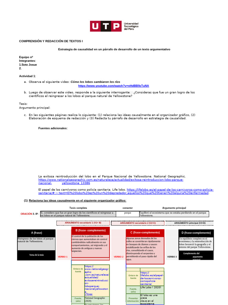 c. En las siguientes páginas realiza lo siguiente: (1) relaciona las ideas causalmente en el organizador gráfico, (2)