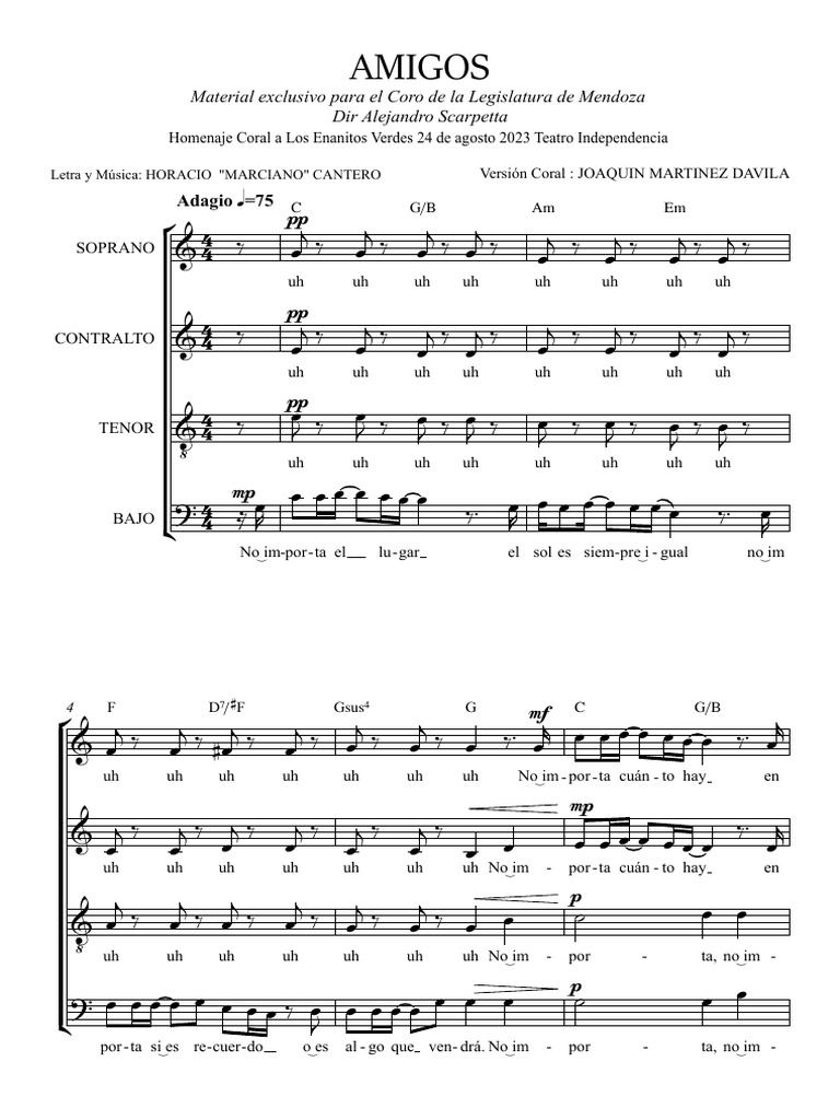 Letra y Música: HORACIO "MARCIANO" CANTERO Versión Coral : JOAQUIN MARTINEZ DAVILA