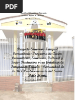 Proyecto Educativo Integral Comunitario Sembrando Valores para Cosechar el Futuro Fase I Siendo partcipes del proceso de cambio de la educacin, el Complejo Educativo Estadal General Rafael Urdaneta con el soporte del equipo de Proyecto Educativo Regional de Rosario de Perij, se articulo en la formacin de proyectos educativos integrales comunitarios en un colectivo con todo el personal dado a lugar en la Escuela dos de febrero, el da 14 de noviembre de 2011 con las ponencias de profesora Ins Sandruche y Elizabeth Carrillo, donde se promovi la culturizacin de necesidad de estos importantes proyectos para el desarrollo integral de todos los actores que intervienen en la educacin en la actualidad, fortaleciendo la estructuracin de un PEIC y su valor para la escuela, donde se dio a entender como un espacio alternativo de la comunidad en la que el aprendizaje formal y no formal se han de conjugar para orientar, estimular y propiciar la participacin activa de sus integrantes de forma asertiva, de tal manera que produzca en ellos