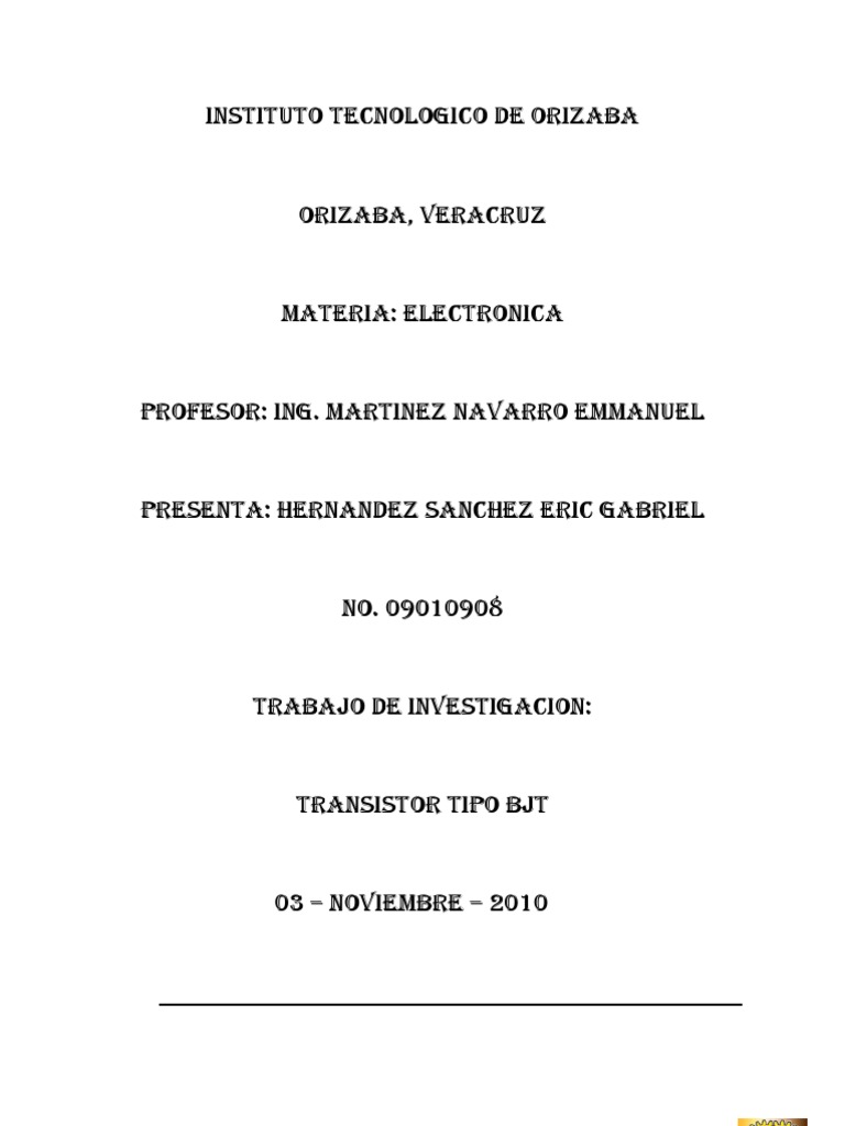INTRODUCCION. El transistor es un dispositivo electrnico semiconductor que cumple funciones de amplificador, oscilador, conmutador o rectificador. El trmino "transistor" es la contraccin en ingls de transfer resistor ("resistencia de transferencia"). Actualmente se los encuentra prcticamente en todos los aparatos domsticos de uso diario: radios, televisores, grabadoras, reproductores de audio y video, hornos de microondas, lavadoras, automviles, equipos de refrigeracin, alarmas, relojes de cuarzo, computadoras, calculadoras, impresoras, lmparas fluorescentes, equipos de rayos X, tomgrafos, ecgrafos, reproductores mp3, telfonos mviles, etc. Compuesto de un material semiconductor que amplifica una seal o abre o cierra un circuito. Inventado en 1947 en Bell Labs, los transistores se han vuelto el principal componente de todos los circuitos digitales, incluidas las computadoras. En la actualidad los microprocesadores contienen millones de transistores microscpicos. Previo a la invencin de los transistores, los circuitos digitales estaban compuestos de tubos vacos, lo cual tena muchas desventajas. Eran ms grandes, requeran ms memoria y energa, generaban ms calor y eran ms propensos a fallas. Los transistores cumplen oscilador, conmutador o rectificador. las funciones de amplificador,