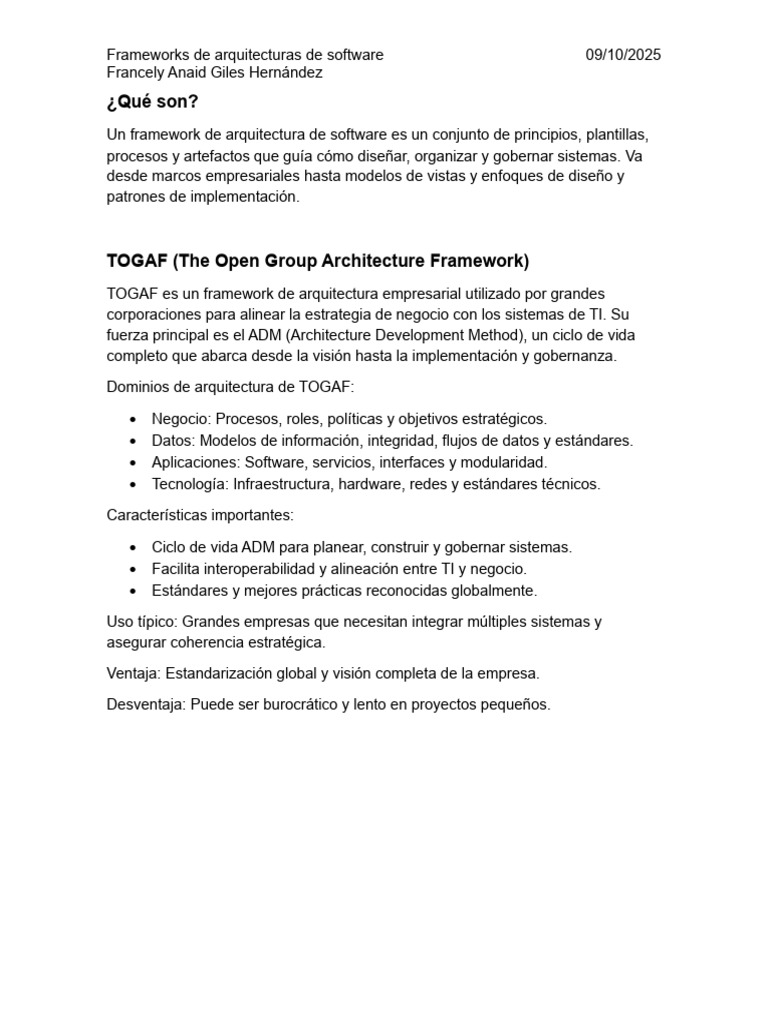 Frameworks de arquitecturas de software 09/10/2025