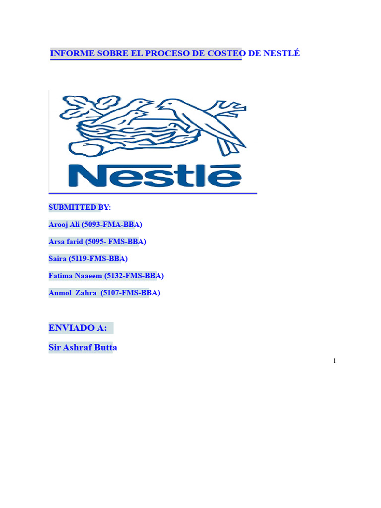 mano de obra directa y costos indirectos de fabricación a un producto Nestlé, como muchos fabricantes