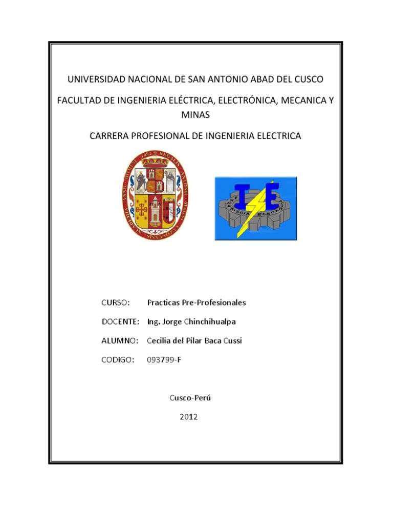 UNIVERSIDAD NACIONAL DE SAN ANTONIO ABAD DEL CUSCO FACULTAD DE INGENIERIA ELCTRICA, ELECTRNICA, MECANICA Y MINAS CARRERA PROFESIONAL