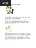 Existen diferentes tipos de carta segn su propsito, el contenido o la persona a la que va dirigida. Cada tipo de carta se caracteriza por un uso particular del lenguaje. Para empezar se debe seleccionar el tratamiento que daremos al destinatario: la eleccin del pronombre de segunda persona ms adecuado (t o usted) o el grado de cortesa en el texto nos pueden informar del tipo de relacin que existe entre los interlocutores.