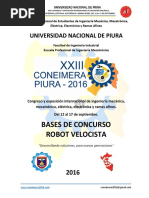 o institucin que presentan un robot. El nmero mximo de personas que puede conformar un grupo es de 4. El Equipo puede estar conformado por estudiantes de distintas universidades e instituciones, si fuera el caso, pero al momento de su inscripcin deben figurar con un solo nombre de equipo.