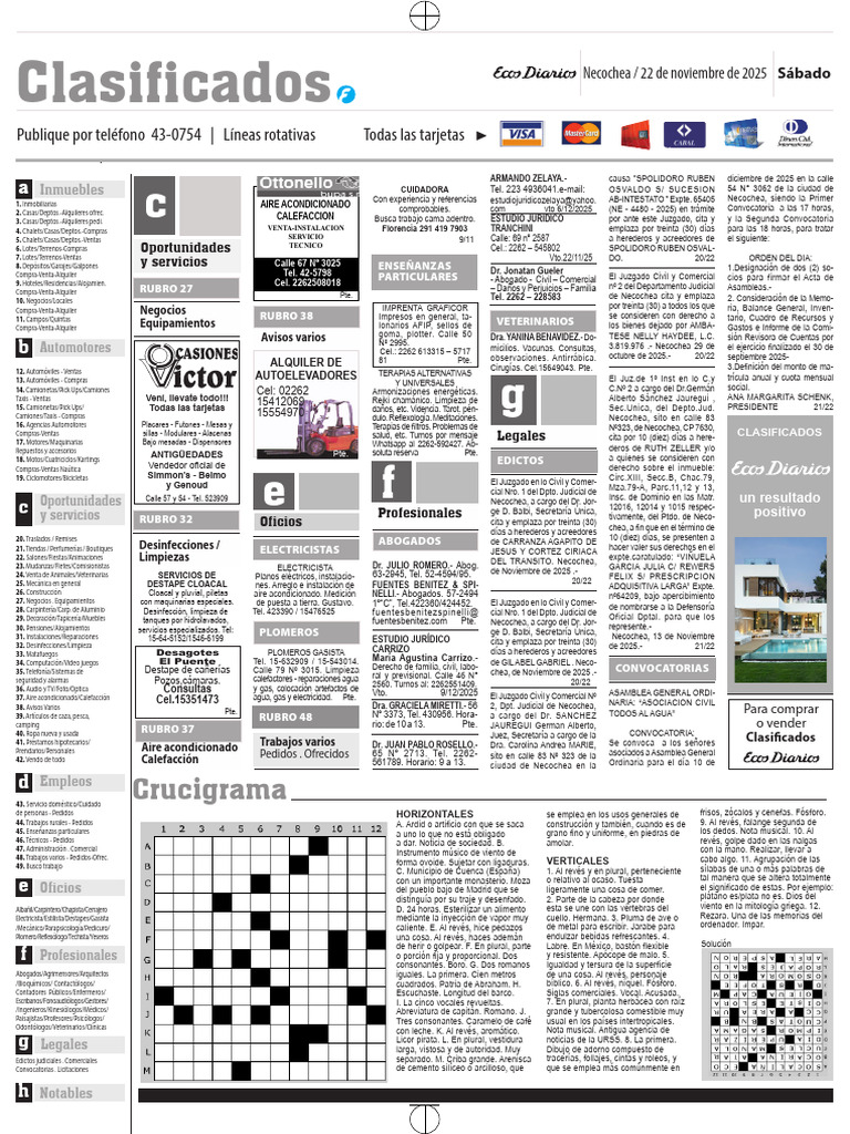 Dirección – Administración – Redacción: Calle 56 Nro. 3011 - Necochea - Prov. de Buenos Aires. Tel. (02262) 43-0754/43-2400. E-mail: administración@ecosdiarios.com - E-mail: redaccion@