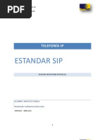 Estndar VoIP (SIP) (Session Initiation Protocol) "Protocolo de Inicio de Sesin" por sus siglas en Ingls es un protocolo reciente que es en la actualidad el mayormente utilizado. VoIP no es un servicio, es una tecnologa En muchos pases del mundo, IP ha generado mltiples discordias, entre lo territorial y lo legal sobre esta tecnologa, est claro y debe quedar en claro que la tecnologa de VoIP no es un servicio como tal, sino una tecnologa que usa el Protocolo de Internet (IP) a travs de la cual se comprimen y
