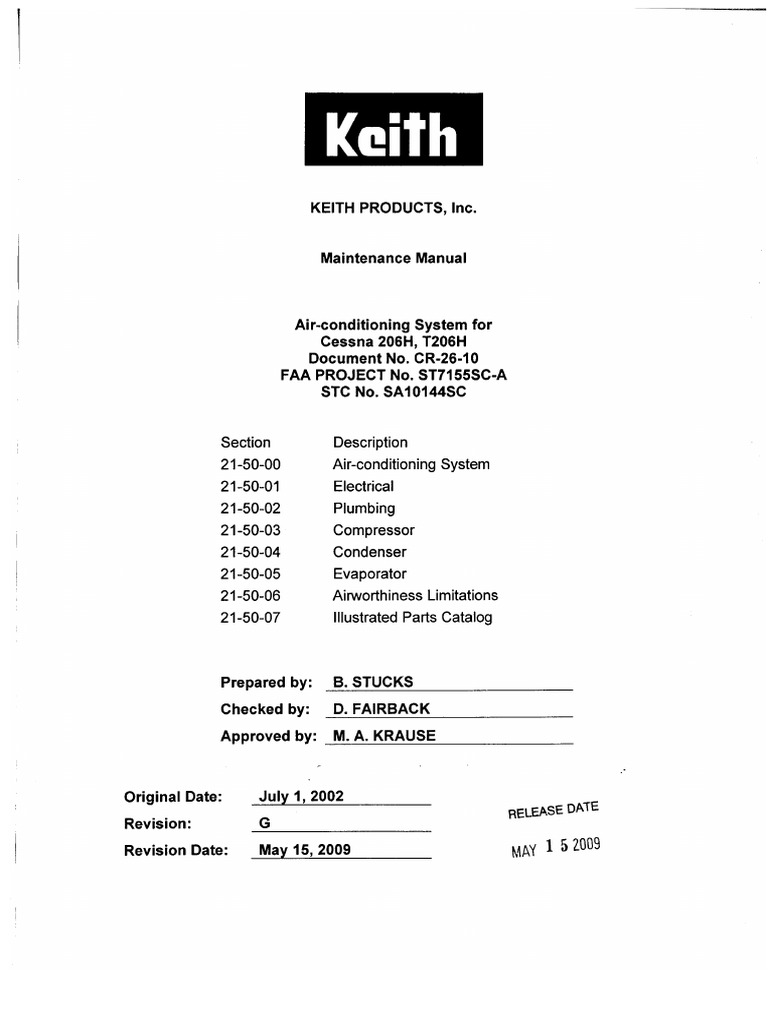 206 con el sistema de aire acondicionado de Keith Products, Inc. El Servicio del Sistema