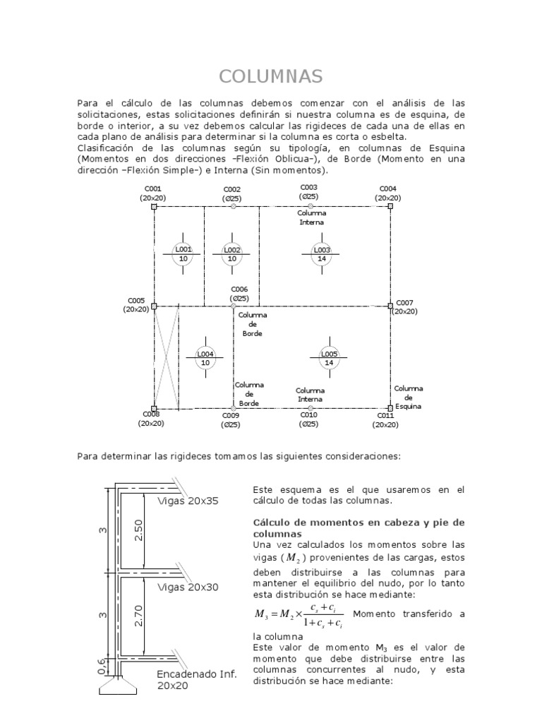 Este esquema es el que usaremos en el clculo de todas las columnas. Clculo de momentos en cabeza y pie de columnas Una vez calculados los momentos sobre las vigas ( M 2 ) provenientes de las cargas, estos