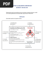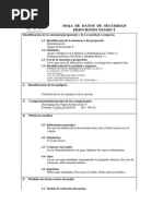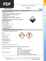Reactivo: Cianuro de Potasio DL50/CL50 (rata): (Aguda) Oral: 5 mg/kg (538 C) Compuesto no inflamable, no produce ignicin a Punto de ignicin: temperaturas normales de trabajo. Reactividad / Generalmente es estable a temperatura ambiente y no Incompatibilidad: produce reacciones qumicas violentas si se le calienta. Polvo granular de color blanco de olor parecido al del Caractersticas HCN, desprende ligeramente vapores en agua, soluble especficas: en agua, en alcohol y medianamente soluble en glicerol. Debe alejarse de la luz, produce soluciones alcalinas. Compuesto muy venenoso si se ingiere, puede resultar muy irritante para la piel y los ojos, la sobre exposicin Equipo de proteccin causa sntomas como dolor de cabeza, confusin, personal: nausea, asfixia y muerte. Requiere el uso de goggles para salpicaduras, guantes, mandil y respirador para polvos y vapores.