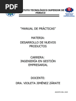 El documento es un encabezado de una práctica de la materia Diseño del Producto en la Universidad Politécnica de Ramos Arizpe. Indica el nombre del profesor, la alumna y el grupo correspondiente. No se proporciona información adicional sobre el contenido de la práctica.
