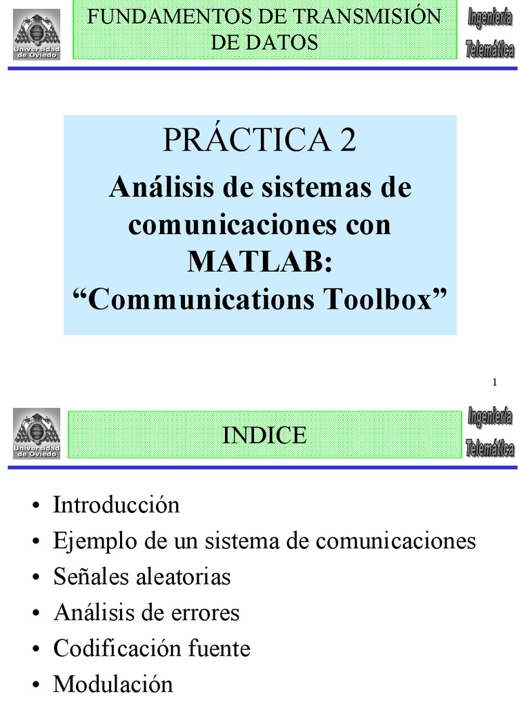 INDICE Introduccin Ejemplo de un sistema de comunicaciones Seales aleatorias Anlisis de errores Codificacin fuente Modulacin