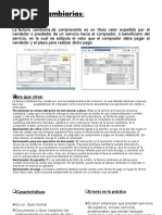 Un CDT es la abreviacin del instrumento financiero bancario Certificado de Deposito a Trmino, el cual es un titulo emitido por un banco a un cliente que ha hecho un depsito de dinero con el propsito de constituir el CDT. En pocas palabras, usted le da a una entidad financiera una cantidad de dinero por cierto periodo de tiempo, la entidad financiera, luego de vencido el tiempo o duracin del CDT le devuelve su dinero junto con unos intereses obviamente ms altos que si tuviera su dinero ahorrado en una cuenta de ahorros convencional. COMO ADQUIRIR UN CDT Debe ser persona natural y con una inversin a partir de $100.000 podrs obtener los beneficios que brinda la tasa diferencial de este CDT. Hablemos para convenir el monto y el plazo de apertura del CDT de 30 a 360 das. Adems elige la modalidad para el pago de tus intereses en forma mensual, bimestral, trimestral, semestral, anual, mltiplos 30 das o al vencimiento. TIPOS DE CDT HAY 2 TIPOS DE CDT: 1. CDT a tasa fija. 2. CDT a tasa variable. CDT A TASA FIJA Ofrecen una tasa fija durante el periodo que dura el CDT. Generalmente aplica para los de poca duracin. CDT TASA VARIABLE: Ofrecen ganancias extras y aplica generalmente para los CDT de 360 das o ms de duracin. TIEMPO MINIMO PARA ADQUIRIR UN CDT La operatoria normal de los CDT lleva a constituir el depsito por un plazo o trmino de tiempo determinado que debe ser como mnimo de 30 das. El CDT es redimible o reembolsable slo en los plazos y trminos pactados. En este sentido, si el CDT se pact a 360 das el banco no lo pagar ni podr ser obligado a pagarlo hasta tanto se venza dicho trmino. DESVENTAJAS Es la disponibilidad del dinero. Usted est sujeto al trmino del periodo para poder disponer de su dinero, antes no puede acceder a l y si lo hace se debe atener a las multas correspondientes. VENTAJAS Si usted tiene una gran urgencia de dinero, puede vender el CDT a otra persona, endosndolo, ya que su naturaleza de ttulo valor permite realizarlo sin ningn problema. CERTIFICADO FACTURA CAMBIARIA Es un ttulo de crdito que incorpora la obligacin de pagar una suma cierta de dinero dentro de un plazo determinado; a la vez que describe las mercaderas que se han vendido como objeto del contrato que le da nacimiento al ttulo. SUJETOS Librador-beneficiario. Es el vendedor de la mercadera o sea quien crea la factura. Librado-aceptante. Es el comprador de la mercadera, y quien por mandato legal est obligado a aceptar la factura que le libre el vendedor. FUNCIN Si un comerciante vendedor se decide por usar la factura cambiaria, la operatividad del ttulo sera la siguiente: El vendedor libra la factura cambiaria como consecuencia de una compraventa en la que las mercaderas han sido entregadas real o simblicamente. La factura es enviada al