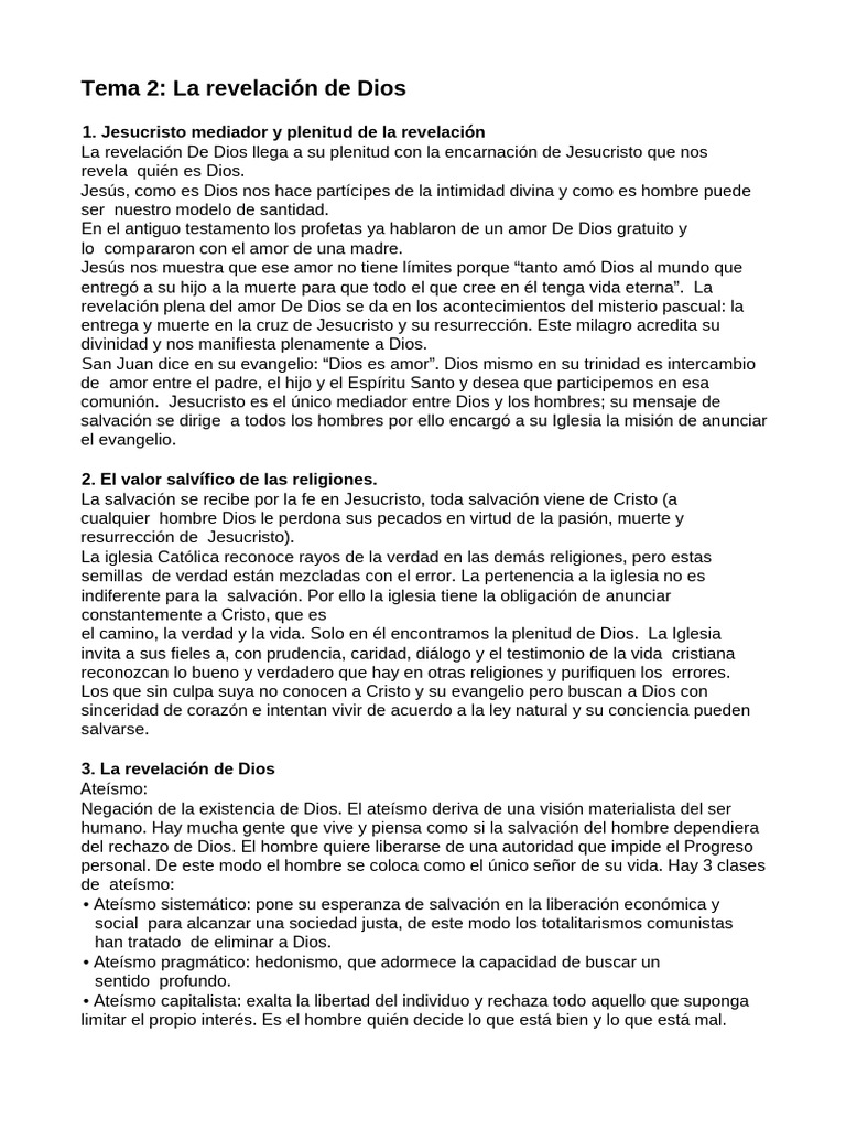 Tema 2: La revelación de Dios