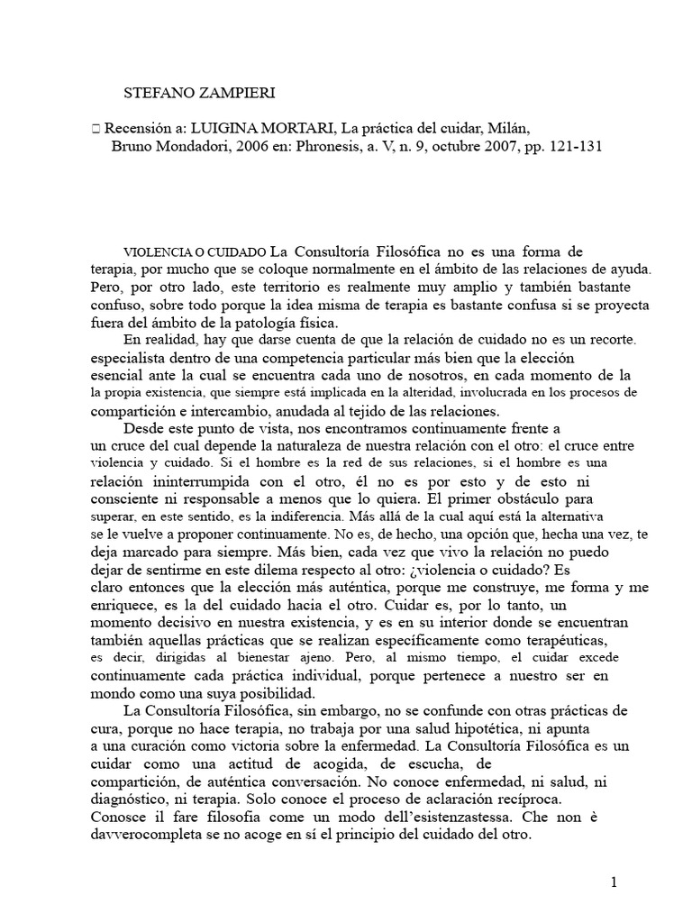 L. Mortari, la práctica del cuidado, cit., p. 151