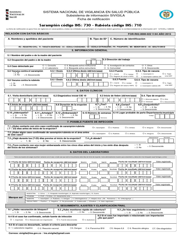 La ficha de notificacin es para fines de vigilancia en salud pblica y todas las entidades que participen en el proceso deben garantizar la confidencialidad de la informacin LEY 1273/09 y 1266/09