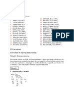 precision simple Precision Sencilla o Simple (32 bits) 1 bit para el signo del nmero en s u totalidad. 8 bits para el exponente -exceso en 127-.los valores del exponente s e mueven en el rango de -127 a +128. 23 bits para la fraccin o mantisa Signo se encuentra en el bit ms significativo, de esta manera podemos usar la misma circuitera ( de enteros) para llevar a cabo comparaciones con respecto al cero. Si es positivo el signo es 0 y si es negativo es 1 Mantisa. Est formada por el resto de los bits en la palabra (23). Como los nmeros s e representan de manera normalizada entonces siempre tendremos un 1 a la izquierda del punto. Por lo tanto este dgito no e s necesario almacenarlo en la palabra y s e tiene de manera implcita que la mantisa consiste realmente en 24 bits de precisin. Exponente con signo. Est conformado por los siguientes 8 bits. Esta ubicacin del exponente en la palabra facilita las comparaciones de nmeros. Si los nmeros se encuentran normalizados, comparamos los exponentes. Si son iguales pasamos a comparar las mantisas. Pero, qu representacin es ms conveniente usar para el exponente?. Si utilizamos Complemento a Dos, los exponentes negativos aparecern como mayores que los exponentes positivos al usar la circuitera de enteros. Para evitar este inconveniente, se utiliza una representacin en exceso N de forma que el exponente ms negativo posible quede en 0000 0001 y el ms grande de los positivos en 1111 1110. El estndar IEEE 754 usa como exceso 127 para precisin simple. Exponente ms negativo representable: x + 127 = 0000 0001 x = -126 Exponente ms grande representable x + 127 = 1111 1110 x = 12 de decimal a binario 1. 2. 3. 4. El bit del signo (bit ms significativo) es positivo cuando el coeficiente es 0 y es negativo cuando el coeficiente es 1. El nmero del exponente es un valor de 8 bits que se obtiene de tal modo: Convertimos el nmero de decimal a binario. Expresamos el nmero de la manera: d0.d1d2x2e . Donde d0, d1 y d2 son nmeros reales. Luego tomamos el exponente y le agregamos 127, eso da como resultado un valor en decimal que luego se transforma en un nmero binario de 8 bits. La mantisa comienza con los bits despus del punto del nmero normalizado seguido de tantos ceros sean necesarios para as completar los 23 bits.