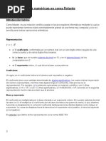 Repesentacion Normalizacion: Dado que un nmero en punto flotante puede expresarse de distintas formas que son equivalentes, es necesario establecer una nica representacin. Es por ello que se trabaja con nmeros normalizados. Decimos que un nmero est normalizado si el dgito a la izquierda del punto o coma est entre 0 y la base ( 0< dgito a la izquierda del punto < b). En particular, decimos que un nmero binario est normalizado si el dgito a la izquierda del punto es igual a 1.