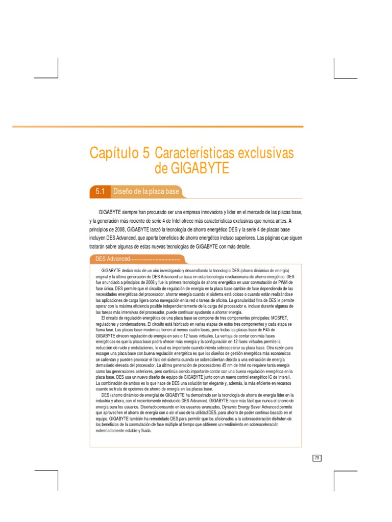 GIGABYTE siempre han procurado ser una empresa innovadora y lder en el mercado de las placas base, y la generacin ms reciente de serie 4 de Intel ofrece ms caractersticas exclusivas que nunca antes. A principios de 2008, GIGABYTE lanz la tecnologa de ahorro energtico DES y la serie 4 de placas base incluyen DES Advanced, que aporta beneficios de ahorro energtico incluso superiores. Las pginas que siguen tratarn sobre algunas de estas nuevas tecnologas de GIGABYTE con ms detalle.