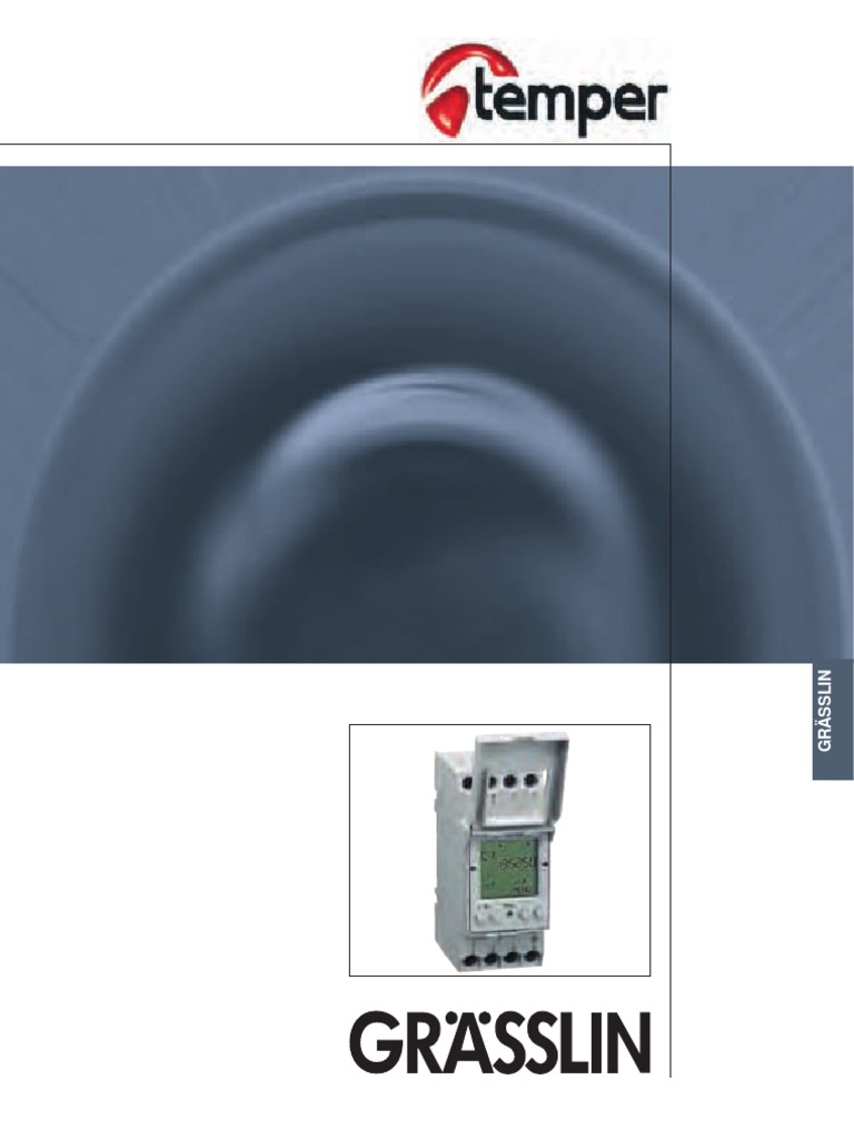 3 mdulos de ancho. Esquema elctrico Se suministran puestos en hora y fecha. 30 (1 circuito) 40 (2 circuitos) espacios de memoria. Tapa abatible y precintable. Memoria EEPROM no voltil. Programable en maniobras mltiplos de segundo (impulso). Programa cclico (pausa-impulso programable) en segundos y minutos. Cambio totalmente automtico de horario verano/ invierno. Sincronizacin del reloj a travs de la radioseal DCF 77. Alimentacin de antena DCF77 integrada. 3 aos de reserva de marcha. Batera de litio. Altura 60 mm.