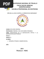 REGLAS GENERALES PARA EL CUIDADO DEL MICROSCOPIO 1. Traslado. Se toma con la mano derecha el brazo del microscopio y con la mano izquierda la base. 2. El cordn se deber enrollar sobre si mismo , no alrededor del cuerpo del microscopio. 3. El microscopio se encender hasta que comience la observacin. 4. Ya encendido, no se apagar constantemente, sino hasta finalizar la observacin de todas las muestras que se indiquen en la prctica, mientras no se observe, se disminuir la intensidad luminosa. 5. Mientras permanezca encendido se evitar realizar cualquier movimiento brusco. 6. Se evitar manejarlo con las manos hmedas o mojadas. 7. Cuando no se est observando, deber eliminarse la lente ocular con el objeto de menor aumento. 8. El sistema ptico y de iluminacin nunca deber ser tocado con los dedos. 9. No se debern colocar los portaobjetos mojados sobre la platina. 10. Despus de usar el lente de inmersin se deber limpiar con un pao suave o con un papel higinico. 11. En las preparaciones en fresco siempre deber cubrirse con cubreobjetos.