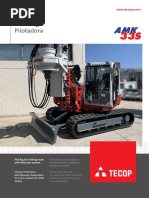 Motor Motor diesel turboalimentado de cuatro tiempos con refrigeracin por agua, inyeccin directa y enfriador de aire de sobrealimentacin que se ajusta a los requisitos EU Etapa IIIA Filtro de aire con indicador Calentador de aire de entrada Desconexin elctrica del motor Filtro de combustible con separador de agua Bomba de llenado de combustible: 50 l/min, con desconexin automtica Alternador, 80 A Sistema de control elctrico / electrnico Contronics: Sistema de control en modo avanzado Sistema de autodiagnstico Indicador de estado de la mquina Control de potencia con deteccin del rgimen del motor Sistema de ralent automtico Refuerzo de potencia con una sola pulsacin Funcin de parada / arranque de seguridad Monitor LCD regulable Interruptor de desconexin elctrica general Circuito inhibidor de nuevo arranque de motor Luces halgenas de gran capacidad: 1 montadas en bastidor 2 montadas en la pluma 2 bateras de 12 V / 150 Ah Motor de arranque, 24 V / 5,5 kW Sistema hidrulico Vlvula anticada de equipos: pluma Dispositivo de advertencia de sobrecarga Sistema hidrulico automtico con sensores Sistema de suma Prioridad de pluma Prioridad de brazo Prioridad de giro Vlvulas de regeneracin de pluma y brazo Vlvulas antirrobote en giro Vlvulas de retencin de pluma y brazo Sistema de filtrado en varias etapas Cilindros de la pluma Amortiguacin de los cilindros Juntas de estanqueidad anticontaminacin de los cilindros Vlvula hidrulica auxiliar Motores de desplazamiento automtico de dos velocidades Aceite hidrulico de larga vida til ISO VG 68 Superestructura Va de acceso con asideros Espacio para guardar herramientas Pasarela de servicio con rejilla antideslizante Plancha inferior (4,5 mm) Cabina y habitculo Asiento tapizado con calefaccin Palancas de control con 4 interruptores cada una Pedales de desplazamiento con palancas de mano Calefaccin y aire acondicionado automticos Soportes de la cabina con amortiguacin hidrulica Asiendo regulable del operador y consola con mandos de palanca Equipo de radio AM/FM con reproductor de CD y entrada de MP3, con antena en el parabrisas Palanca de bloqueo de seguridad hidrulica Cmara de visin trasera Cabina insonorizada en cualquier condicin climtica, que incluye: Soporte para bebidas Cerraduras de las puertas Alfombrilla Bocina Gran espacio de almacenamiento Ventana delantera elevable Parte inferior del parabrisas desmontable Cinturn de seguridad retrctil Cristales de seguridad, ligeramente tintados Proteccin contra la lluvia Parasol (anterior, posterior y techo) Limpiaparabrisas con equipo de lavado y funcin intermitente Preparacin para montaje de kit antivandalismo Llave maestra Chasis inferior Tensores hidrulicos de la cadena Eslabones de la cadena engrasados y sellados Gua para las cadenas Plancha inferior (gran resistencia, 10 mm) Tejas Tejas de triple arista Equipo de excavacin Pluma 6,2 m Brazo: 2,55 m Servicio Kit de herramientas para mantenimiento diario CareTrack