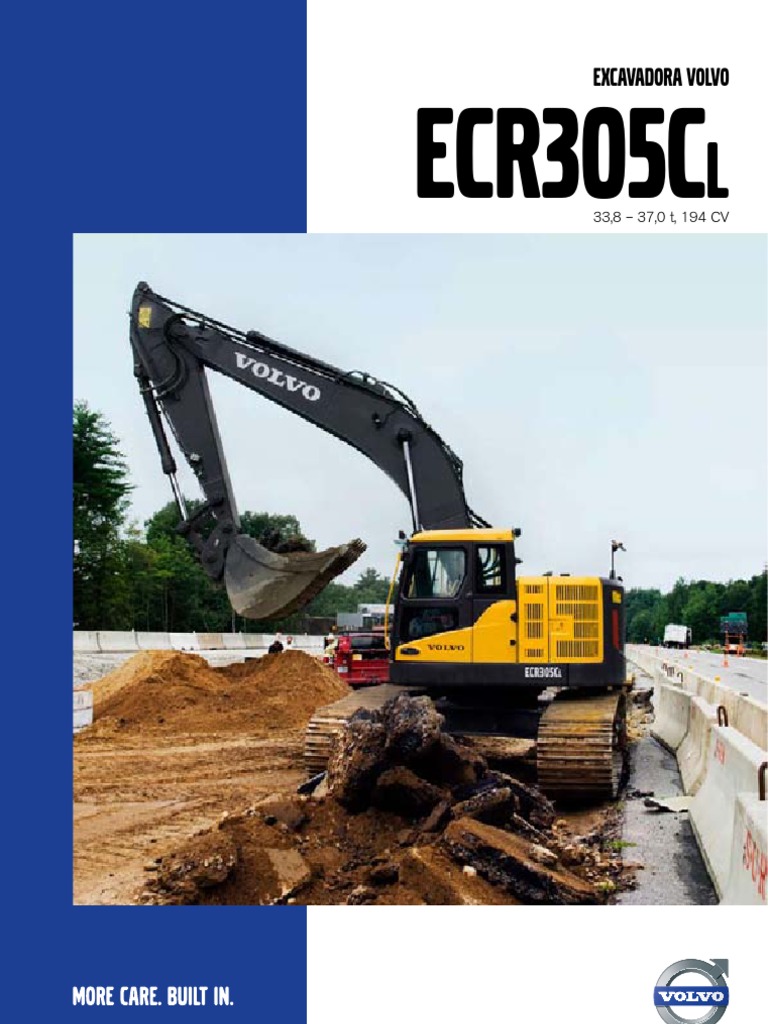 Siempre hay ms por hacer en cada giro. La Volvo ECR305CL est preparada. Llenar el cazo, girar, cargar, todo se ejecuta con suavidad, precisin y comodidad. En trabajos de ingeniera civil, instalacin de caeras, manipulacin de material, etc., la Volvo ECR305CL le ayuda a transformar el trabajo que realiza en mayores beneficios.