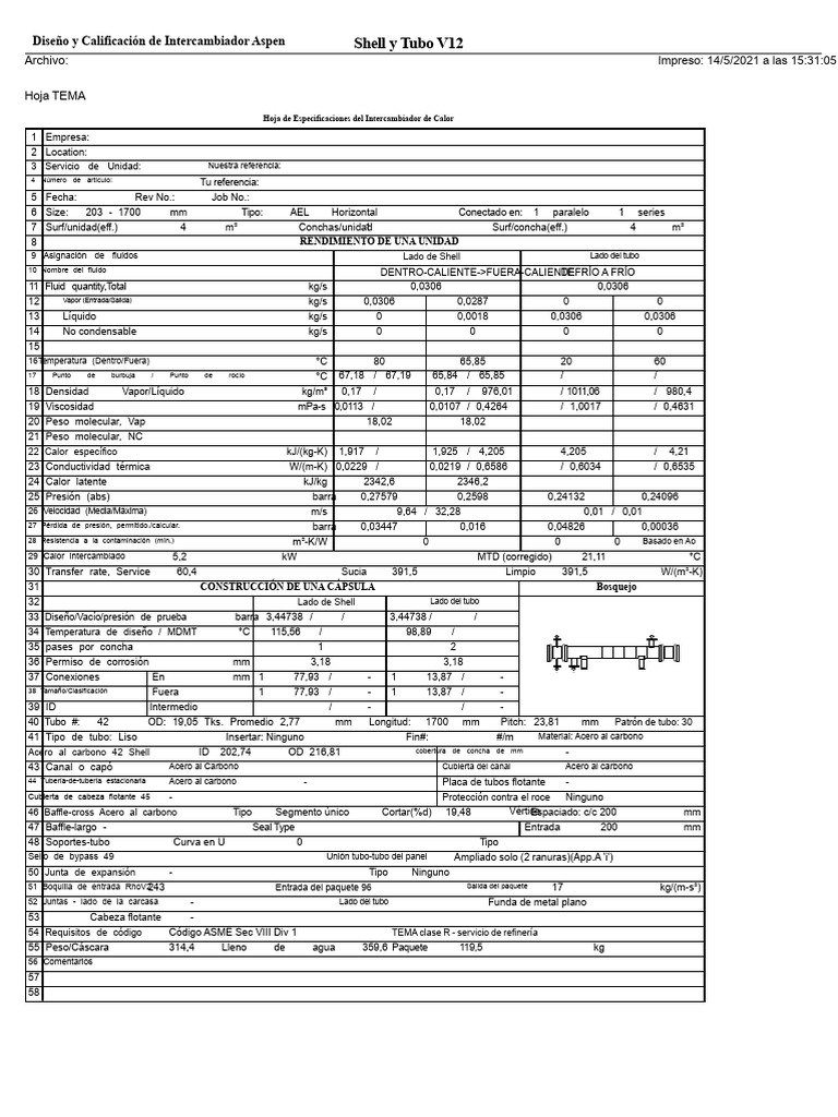 34 Temperatura de diseño / MDMT °C 115,56 / 98,89 / T2 S1