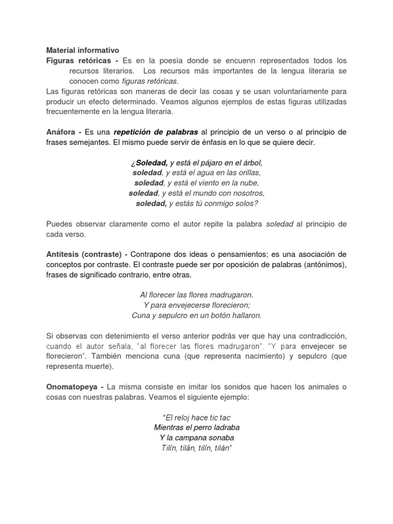 Material informativo Figuras retricas - Es en la poesa donde se encuenn representados todos los recursos literarios.